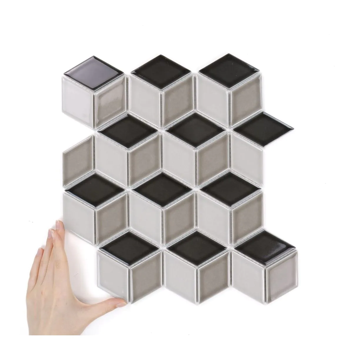 Kachle ve tvaru kosočtverců vytvářejí efektní geometrické kompozice, které poutají pozornost svou symetrií a výrazností.