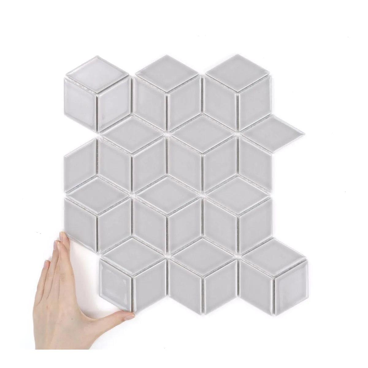 Kachle ve tvaru kosočtverců vytvářejí efektní geometrické kompozice, které poutají pozornost svou symetrií a výrazností.
