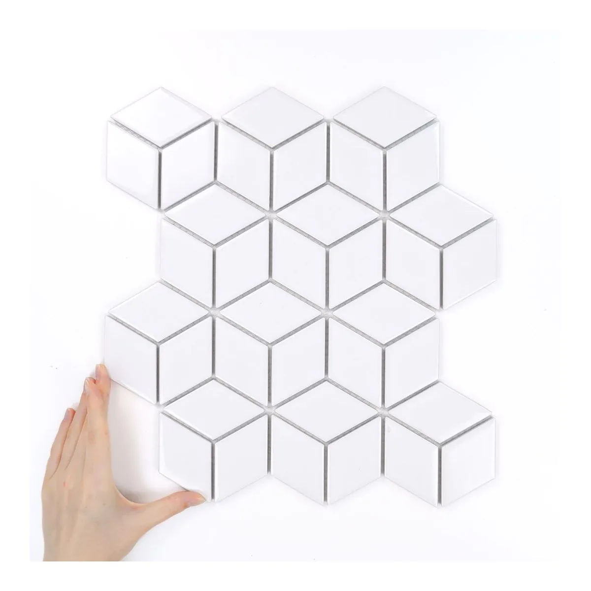 Kachle ve tvaru kosočtverců vytvářejí efektní geometrické kompozice, které poutají pozornost svou symetrií a výrazností.