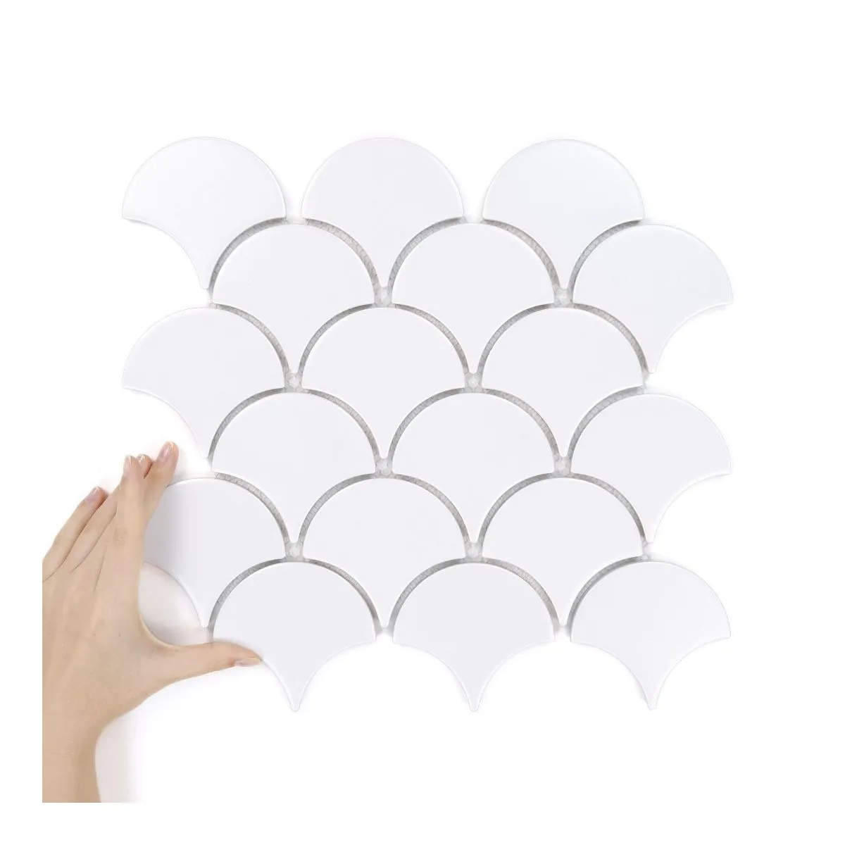 Inspirací pro Flabellum White Matná byly motivy převzaté z přírody a středomořské architektury, kde rybí šupina po staletí symbolizuje eleganci a bohatost detailu.