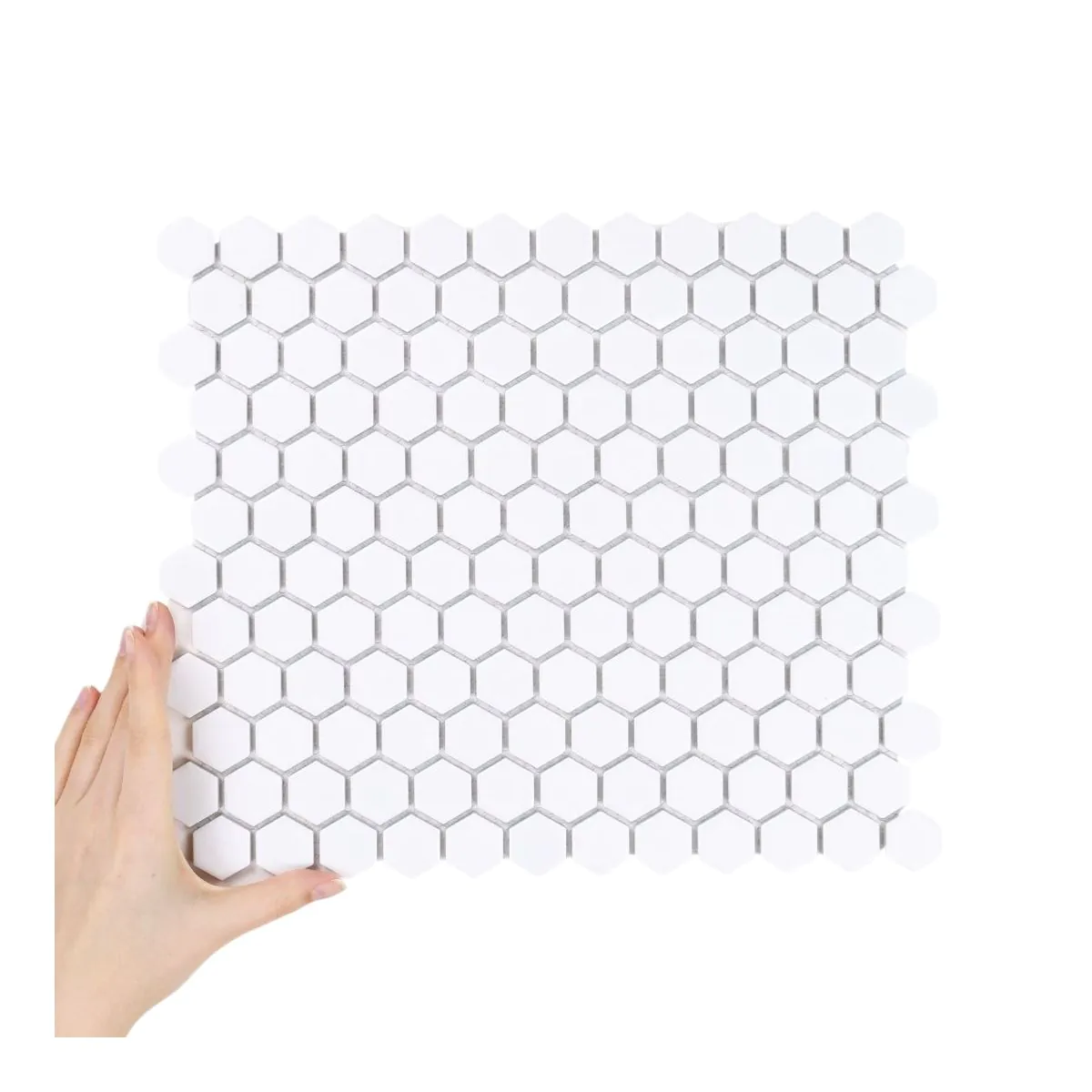 Pravidelné šestiúhelníkové dlaždice umístěné na síťkách vytvářejí jednotný a harmonický celek a zároveň nabízejí široké možnosti pro návrhy.