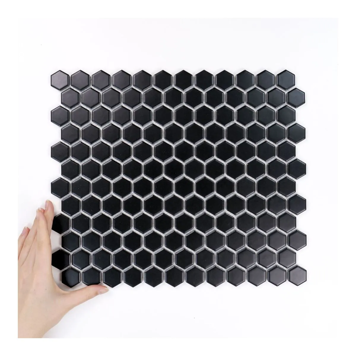 Pravidelné šestiúhelníkové dlaždice umístěné na síťkách vytvářejí jednotný a harmonický celek a zároveň nabízejí široké možnosti pro návrhy.