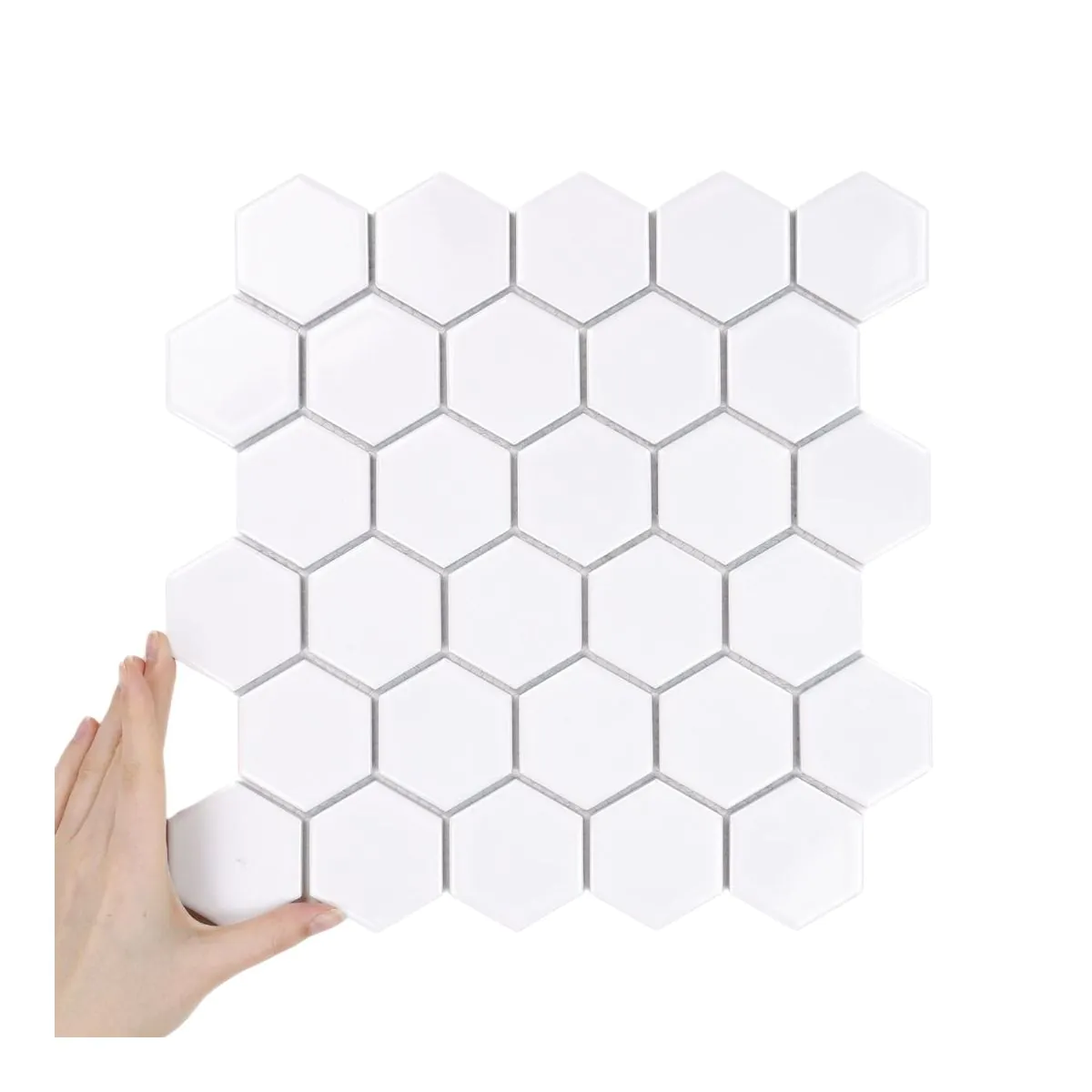 Pravidelné šestiúhelníkové dlaždice umístěné na síťkách vytvářejí jednotný a harmonický celek a zároveň nabízejí široké možnosti pro návrhy.