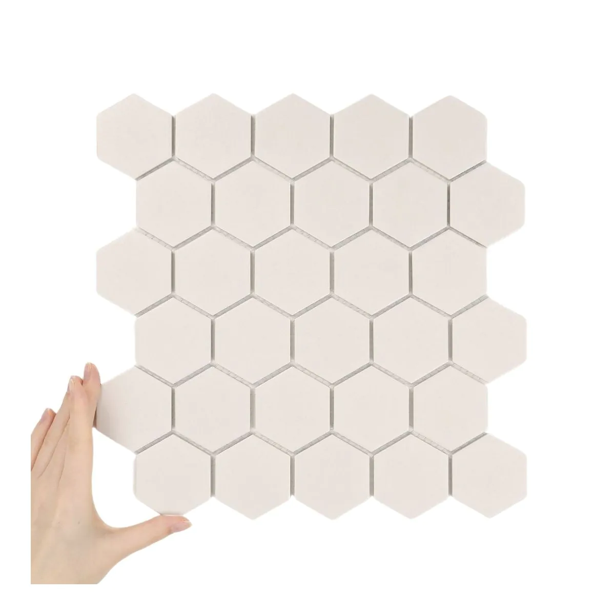 Pravidelné šestiúhelníkové dlaždice umístěné na síťkách vytvářejí jednotný a harmonický celek a zároveň nabízejí široké možnosti pro návrhy.