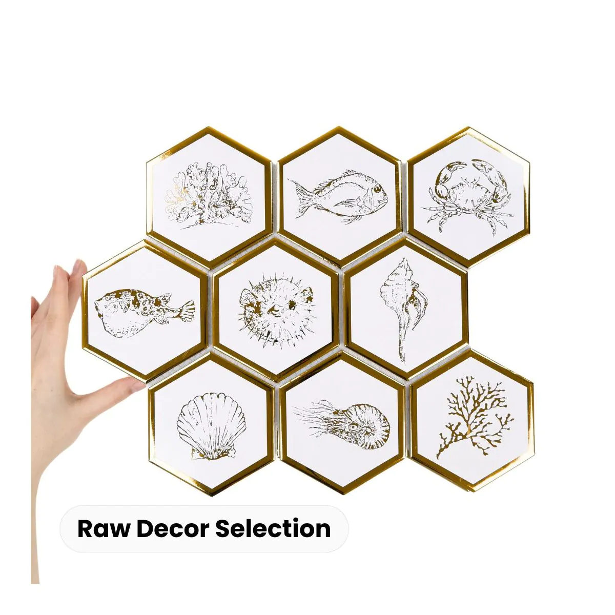 Kolekce Queen je unikátní návrh Raw Decor, ve kterém se klasická forma hexagonu setkává s uměním autorské kresby. Motivy včel a mořských vln byly ručně nakresleny Małgorzatou Wegner – majitelkou značky Raw Decor a spolutvůrkyní její identity. Inspirací pro Heksagon XL Queen Sea Coral byly pozorování přírody a fascinace světem kolem nás, které v této kolekci získaly výjimečnou keramickou podobu. Kombinace geometrické formy s uměleckým detailem dává kolekci nejen dekorativní, ale i symbolický rozměr – vypráví příběh značky zakořeněné v řemesle a vášni pro tvorbu.